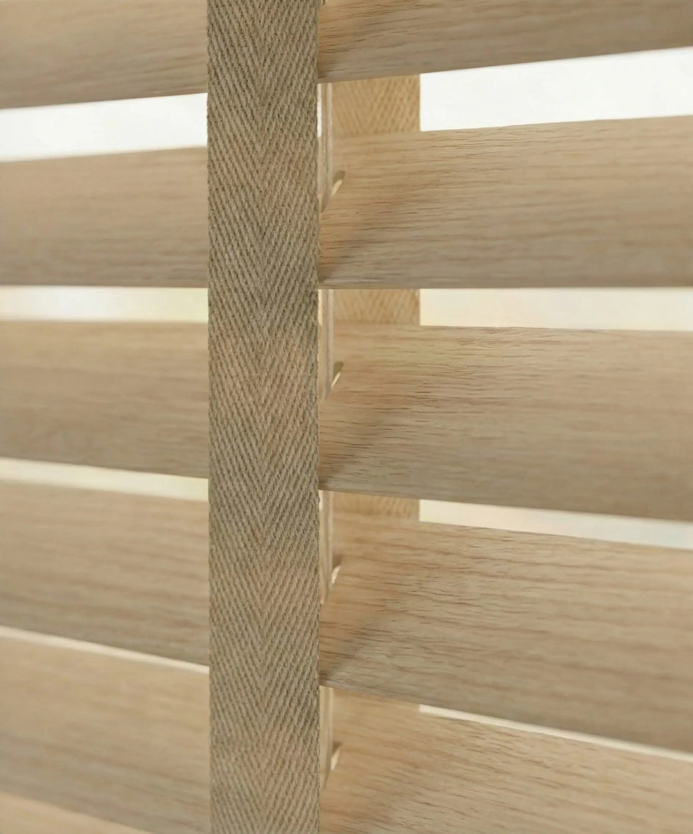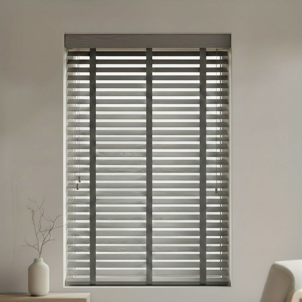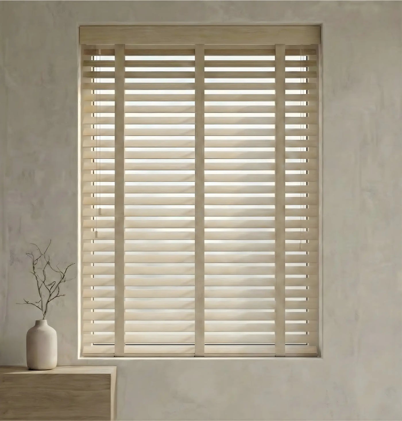 De Houten Jaloezie van 50 mm staat bekend om zijn krachtige en luxe uitstraling. De brede houten lamellen geven het raam direct karakter en zorgen voor een rustige, hoogwaardige look. Door de lamellen te kantelen bepaal je nauwkeurig de lichtinval en privacy, terwijl de jaloezie altijd strak en stijlvol oogt. Deze uitvoering is ideaal voor woonkamers, grote ramen en ruimtes waar het raam echt mag opvallen.