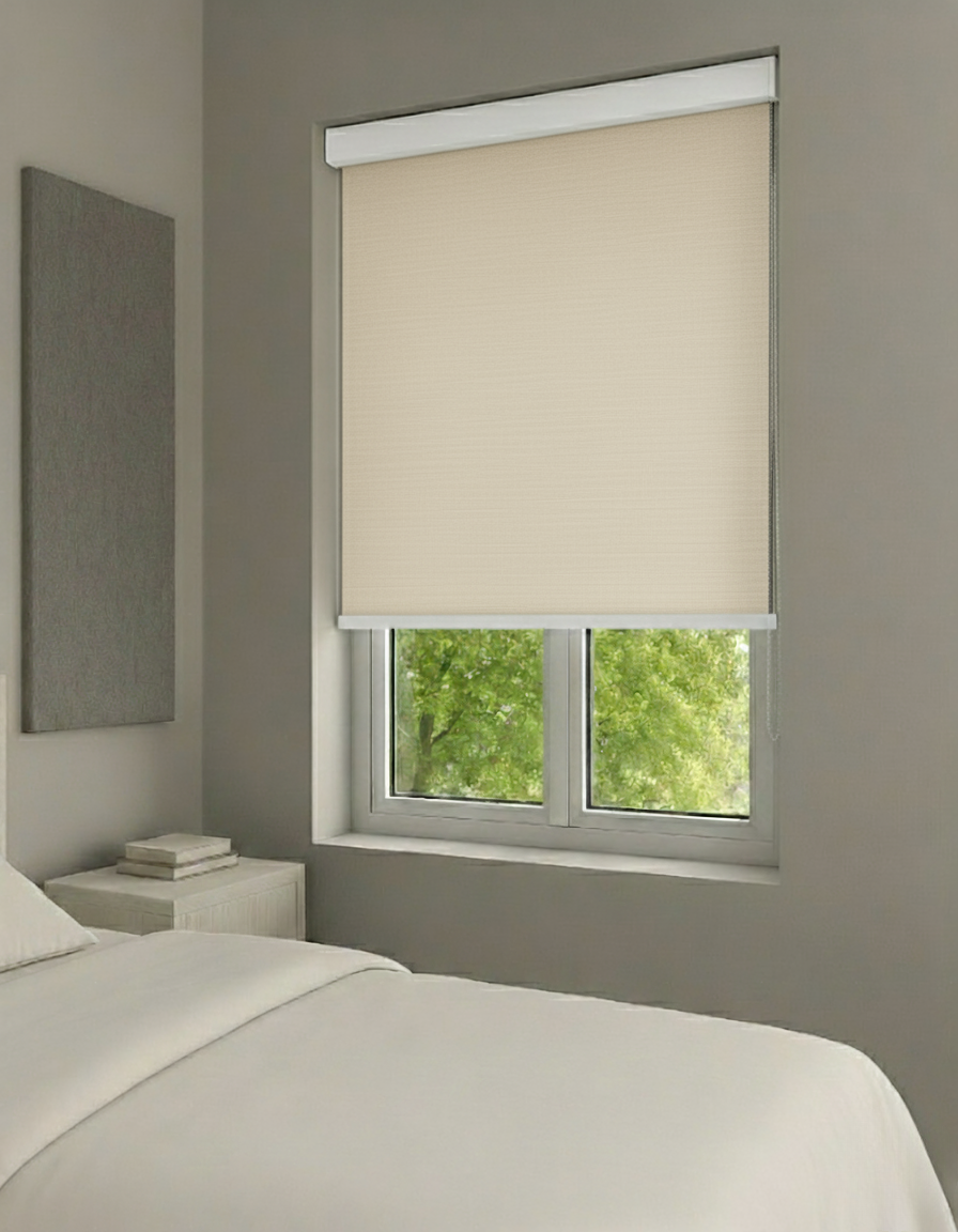 Rolgordijn Verduisterend - Crème: Luxe verduisterend rolgordijn Crème op maat gemaakt. Combineer elegant design met diepe verduistering en een perfecte pasvorm. Ideaal voor slaapkamer, woonkamer of kantoor. Hoogwaardige stof, zorgvuldig op maat geproduceerd en eenvoudig te bedienen – jouw stijlvolle oplossing voor rust, privacy en comfort.